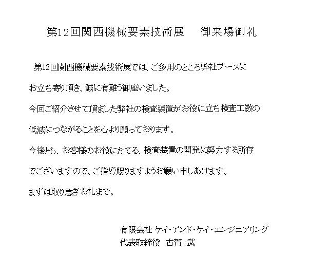 第12回関西機械要素技術展 ご来場御礼