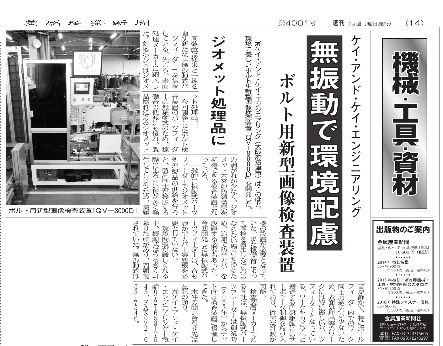 にボルト用画像検査装置の記事が掲載されました