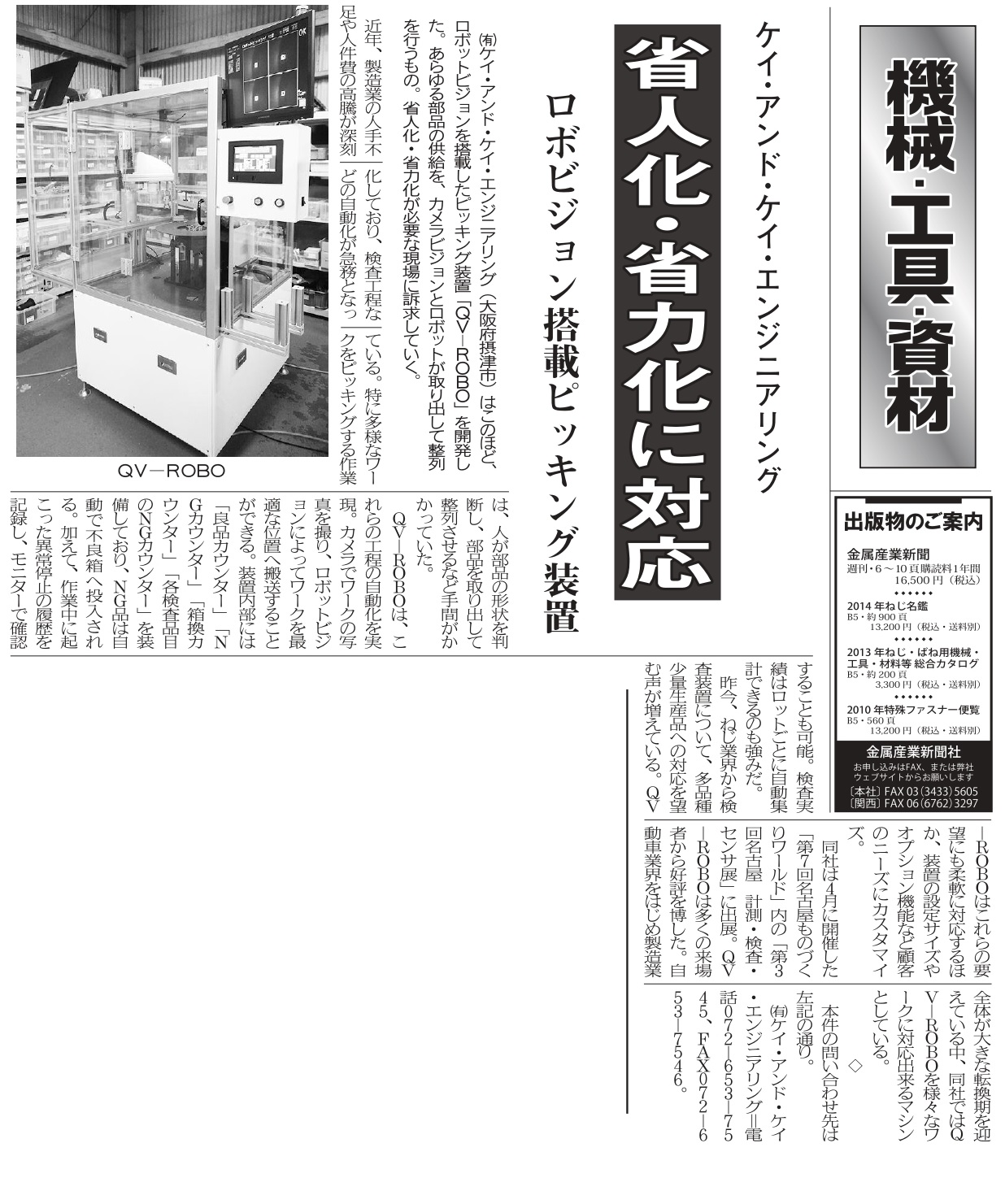 金属産業新聞6月27日付、第4043号にピッキングユニット「QV-ROBO」が掲載されました。