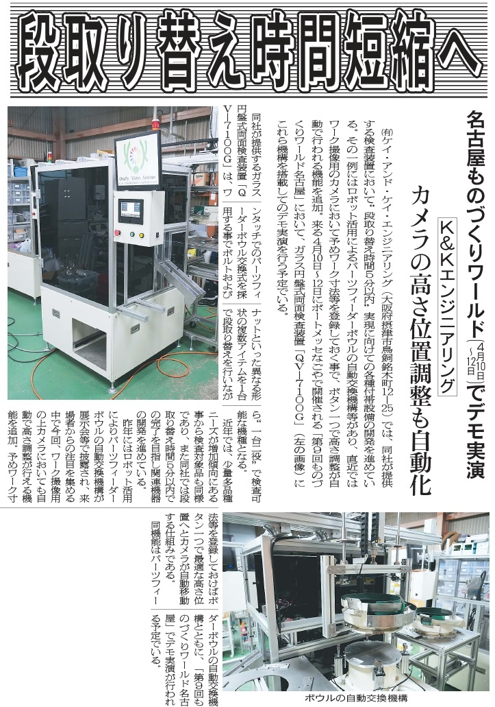 に展示会出展のパーツボール自動交換装置が掲載されました